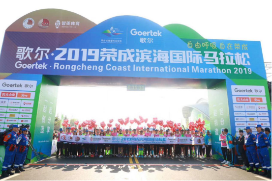 5月3日上午7:30,由中国田径协会、山东省体育局、荣成市人民政府主办,山东省田径管理中心、威海市体育局、荣成市教育和体育局承办的歌尔•2019荣成滨海国际马拉松赛在荣成市体育中心鸣枪起跑。国家体育总局自行车击剑运动管理中心党委书记孙为民,山东省体育产业服务中心主任翟培建,山东省田径管理中心主任杨刚,威海市人民政府副市长杨丽,歌尔集团有限公司董事长姜滨,威海市体育局局长丛华清,中共荣成市委副书记、市长刘昌松,荣成市人大常委会主任吕劭伟,荣成市政协主席战大海,中共荣成市委副书记王洪晓,荣成市人民政府副市长李文海,智美体育集团高级副总裁宋鸿飞出席了开幕式。此次赛事共吸引参赛选手1万2千余名,其中包括来自比利时、韩国、加拿大、日本、肯尼亚等国家和地区的外籍选手,赛事通过CCTV-5全程直播。