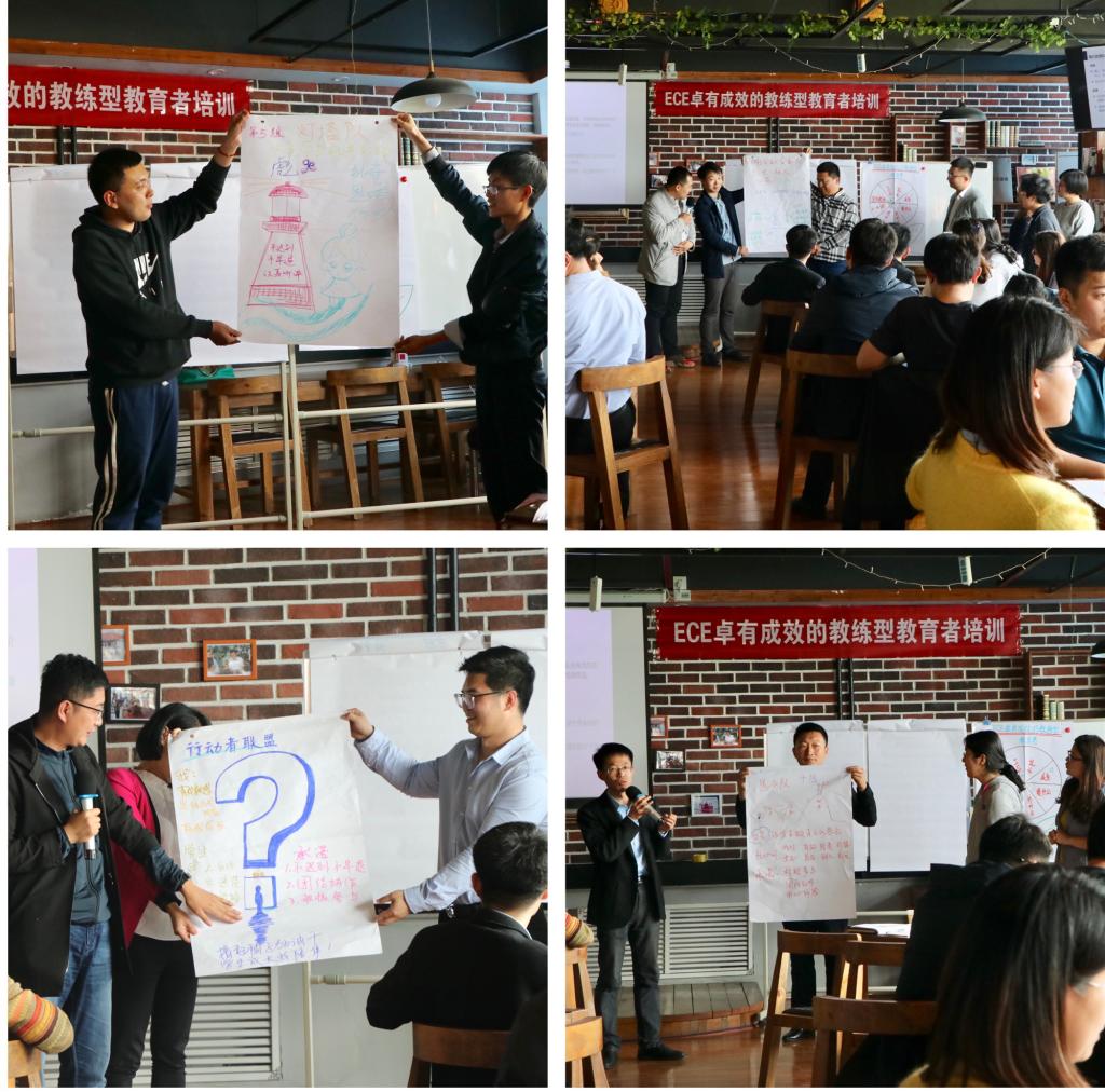 本次ECE培训主讲老师王秀丽是教练技术领域资深的指导教师,在培训过程中,她以亲身经历作为切入点,通过知识讲解、案例分析、趣味互动、练习分享、体验式教学等多样化的教学手段,教授学员当下最前沿的教练理念和模式,即“1个中心、4个问题、8大原则、16大工具”。深入阐释了卓有成效教练式谈话技巧的概念、作用和优势,全新的理念给参训老师带来巨大的启发。参训教师认真投入,积极互动,真正做到了“思维参与、言语参与、行为参与”。在王老师的引领下,老师们运用教练式思维,开展教练式沟通,以支持者和陪伴者的身份,积极引导和帮助学生澄清目标、提升能量、挖掘资源、引发行动,从而达到顺畅沟通、有效交流、解决问题、助人自助的目的。