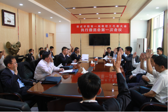 6月2日下午4时10分,荣成学院第一届教职工代表大会(以下简称“教代会”)执行委员会第一次会议在办公楼二楼会议室召开,新当选的25名教代会执行委员会委员出席会议,会议由大会主席团确定的执行委员会第一次会议召集人王坤主持。
