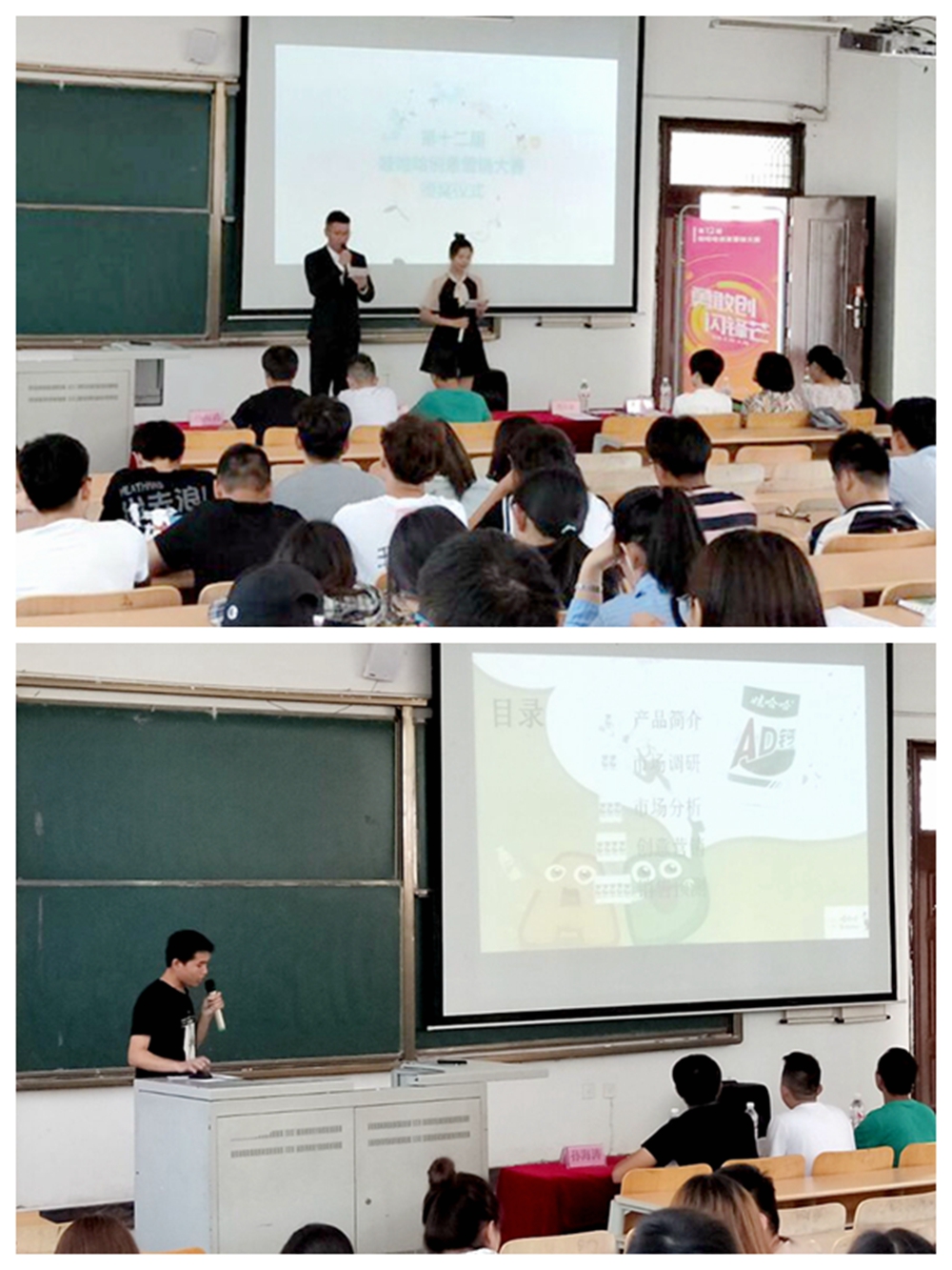 为了丰富学生课余文化生活,增强对创业的热情,培养学生销售能力,日前,由娃哈哈集团主办,学院经济管理系承办的第十二届“娃哈哈”营销策划大赛校赛在新教D101圆满落幕。娃哈哈烟威地区高校经理张国强、经济管理系副主任姚金鑫老师、工商管理教研室主任邵博老师、卞珊珊老师、孙海涛老师以及周亚男老师作为评委出席了此次活动。