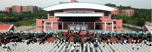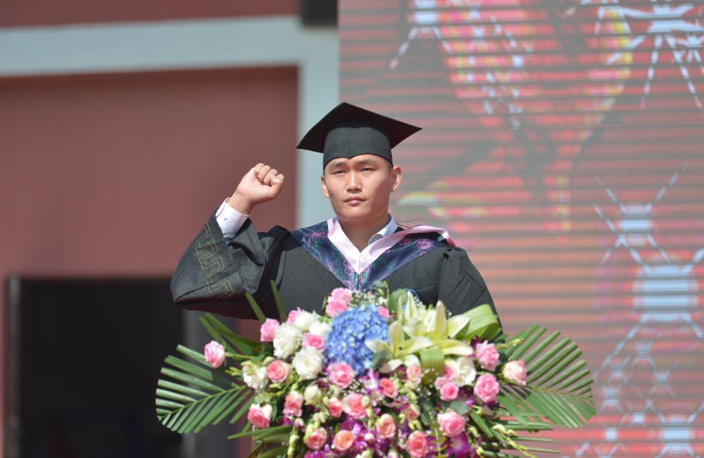 毕业典礼上,全体毕业生庄严宣誓:将以实际行动,弘扬理工精神;铭记师长教诲,永远牢记校训;不负母校培养,不负祖国希望;拼搏进取奋斗,乐观健康向上;勇做时代新人,勇担复兴大任;为实现中国梦贡献青春智慧和力量!