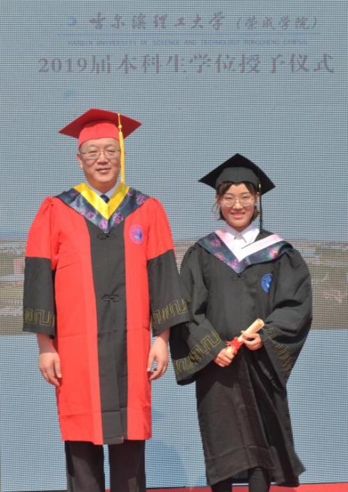 学校工会主席兼荣成学院院长徐向晨为毕业生授予学位