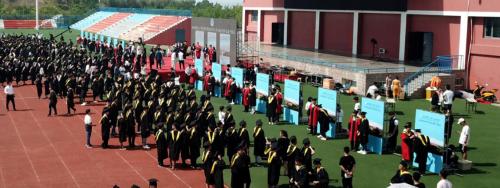 6月28日上午8点10分,荣成学院2019届学生毕业典礼暨学位授予仪式在体育场隆重举行。学校党委书记张洪涛,学校校长、学位评定委员会主任委员赵琳,学校工会主席兼荣成学院院长徐向晨,学校办公室主任郗朝晖,学院党委书记刘云峰,常务副院长杜野,校友代表,学术委员会委员,指导教师代表,学院各系部办主要领导,毕业生家长代表出席典礼仪式。典礼由学院党委副书记兼副院长王坤主持。