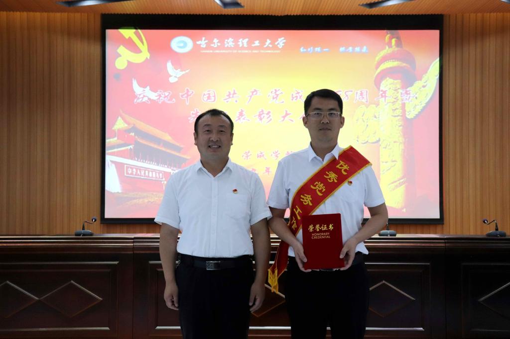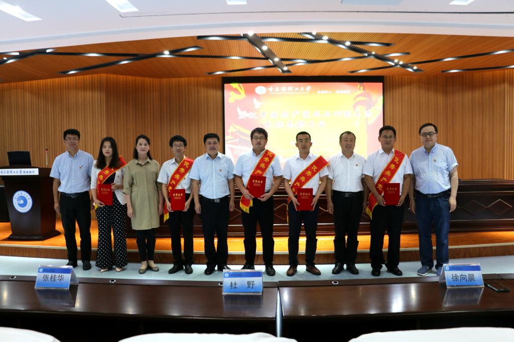 首先,全体参会人员通过同步视频观看学校七一表彰大会。随后王坤副书记宣读学院七一表彰决定,在欢欣鼓舞的音乐中,学院领导为学校表彰的先进基层党组织马列教研部党支部、董晗等5名优秀共产党员和优秀党务工作者丁洋,以及学院表彰的电气系党总支、国际教育学院党总支、经管系党总支3个先进基层党组织,丁明雷等20名优秀共产党员,学生优秀共产党员代表孙林和优秀党务工作者王洁、任新光颁奖。