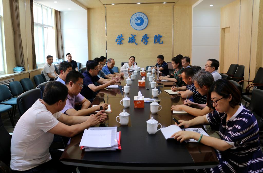 7月5日,荣成市宁津街道办事处党工委书记战军刚,党工委副书记张文荣,党工委委员一行到荣成学院走访交流,与学院就学生实习实践、就业、专业项目合作等校地企合作事宜进行了交流。校工会主席兼荣成学院院长徐向晨、院党委书记刘云峰、副院长张桂华在办公楼一楼会议室会见来访领导,相关部门负责人及教师参会。