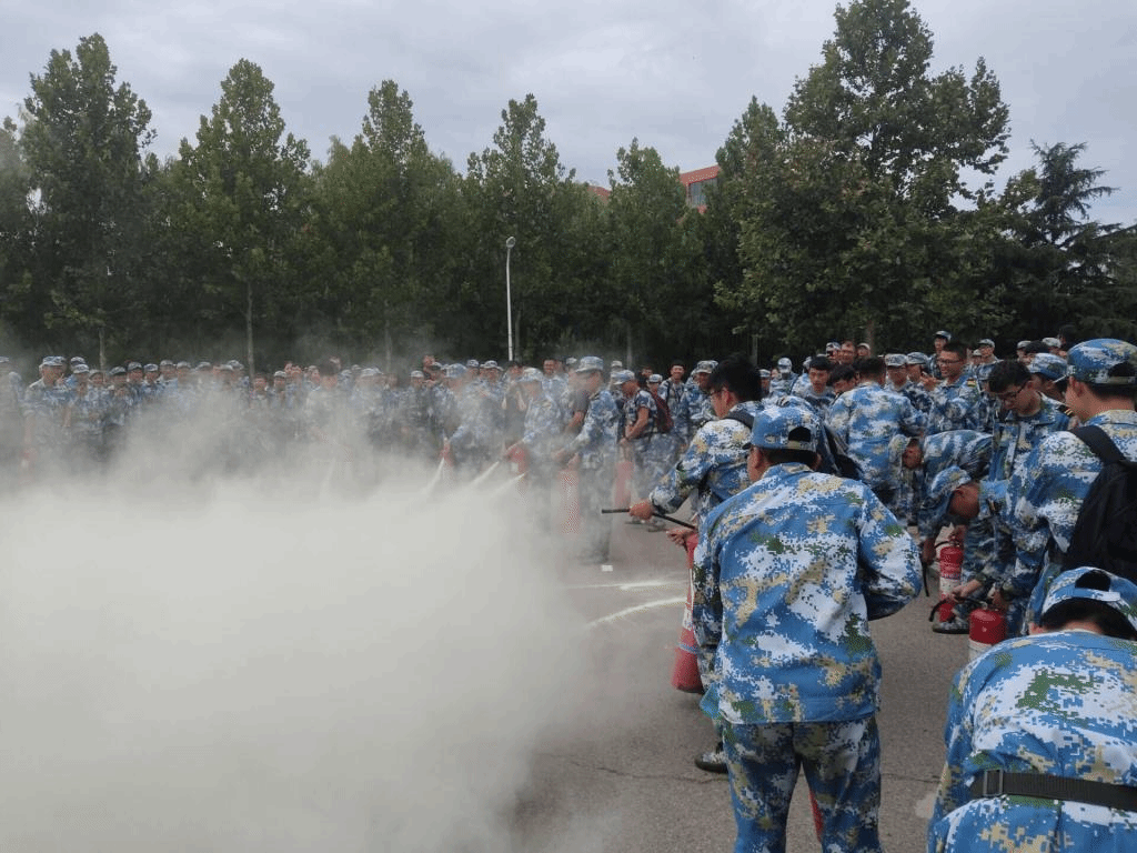 我们也进行了消防演练,在演练现场,荣成市消防总队警官首先讲解了消防方面的理论知识,让新生更加了解了消防工作;然后席警官对灭火器的操作步骤、实战中的注意事项进行了详细说明,并现场演示。让全体人员进一步掌握消防设备的使用,参与单位和人员等对应急预案的熟悉程度,提高其应急处置能力。干粉灭火器使用基本要领包括:一摇、二拔、三喷、四扫。在席警官进行示范操作后,为提高新生消防安全知识与应变自救能力,增强消防安全意识与责任感,提升新生应对突发事件的能力。保卫办公室在广场准备了模拟火灾现场,每个班级的学生代表都参与了模拟实战,基本掌握了灭火器的操作方法和使用技巧。