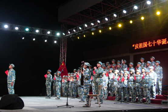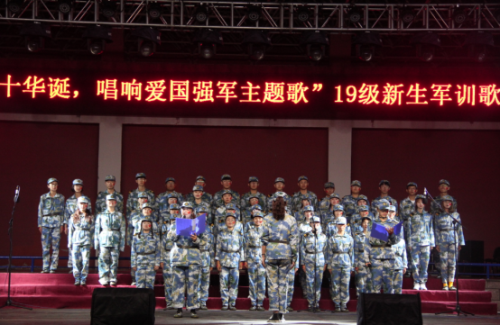 大合唱不仅展现着连队间的凝聚力,更能体现出莘莘学子的爱国之情。挺拔如松的站姿,整齐划一的动作,伴随着令人精神抖擞的军歌旋律,指挥准确有力的动作,同学们大气磅礴的歌声响彻在夜晚。在七十周年国庆到来之际,同学们用自己的歌声为祖国母亲献礼,在激昂的歌声中回忆当年的岁月,用动听的旋律谱写新时代的激越。这个时代带给我们的平安祥和,让我们能读到前辈们的筋骨血肉,英雄峥嵘。