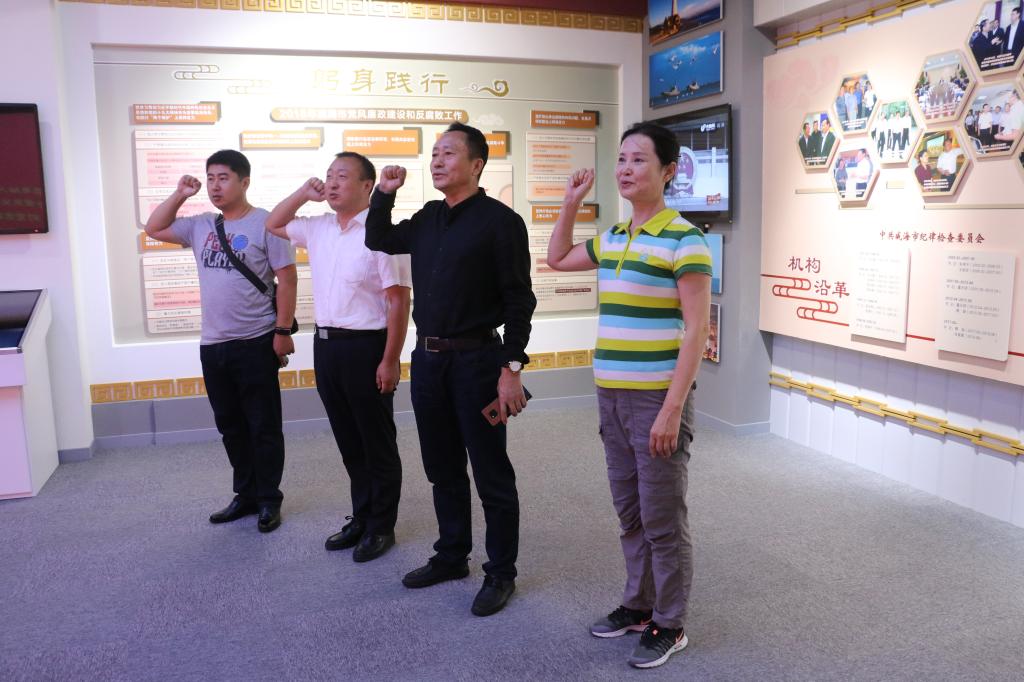 在讲解员的带领下,通过重温党和国家领导人有关反腐倡廉的经典论断,学习古今中外的廉政格言、廉政故事,亲身感受历史官员、革命先辈的清廉风范;观看具有典型意义的警示案例,落马干部的忏悔录,感召、引导广大党员干部坚定理想信念,拒绝腐蚀蜕化。参观结束后,大家在党旗下举起右拳,重温入党誓词。