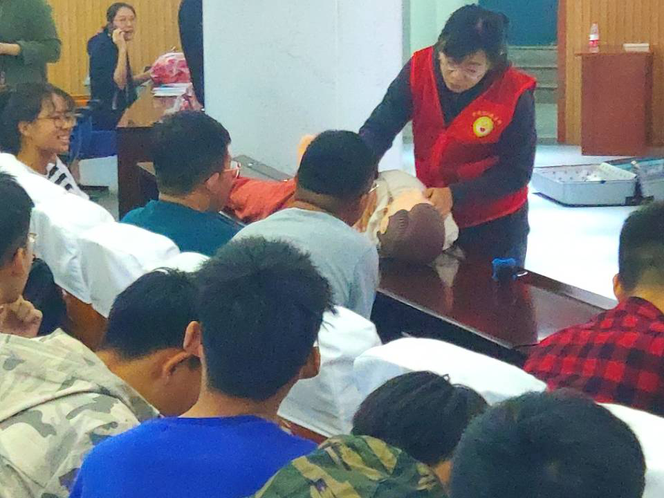 讲座中,李晓燕主任用通俗易懂的语言向学生们讲解引起高血压的常见原固、临床表现及日常生活中如何预防高血压等知识,并就学生提出的问题进行解答。同时,李主任倡导大家要掌握合理膳食、科学锻炼身体、保持心理平衡等科学生活方法。在讲座的最后,李主任为现场同学进行了心肺复苏的教学,血压测量和简单的健康咨询。