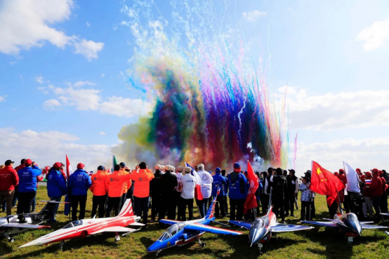 开幕式上,固定翼特级花式配乐飞行、固定翼喷气油动编队飞行、固定翼Mig 15和F86的空战模拟作战表演、固定翼喷气油动L39/JETCAT、泡沫花式模型电动航模等轮番上演,而第三次来荣成的俄罗斯顶尖无线操控模型表演大师阿列克谢依·勃勃夫带来的泡沫花式模型电动航模表演,则再次将现场气氛推向了高潮。航模在蓝天白云之间“自由飞翔”,不断划出美丽的弧线,速度与激情的航空科技“蓝天盛宴”,给广大观众带来震撼和振奋的视觉体验,引发阵阵赞叹欢呼。