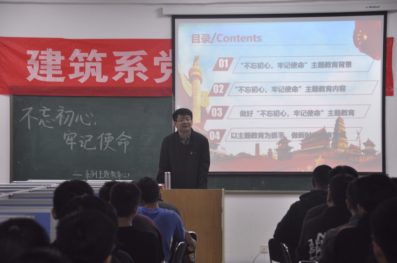 为深入学习贯彻习近平总书记报告内容,建筑工程系党支部特此展开“不忘初心,牢记使命”主题党课教育活动,学院王坤书记担任本次活动主讲人。