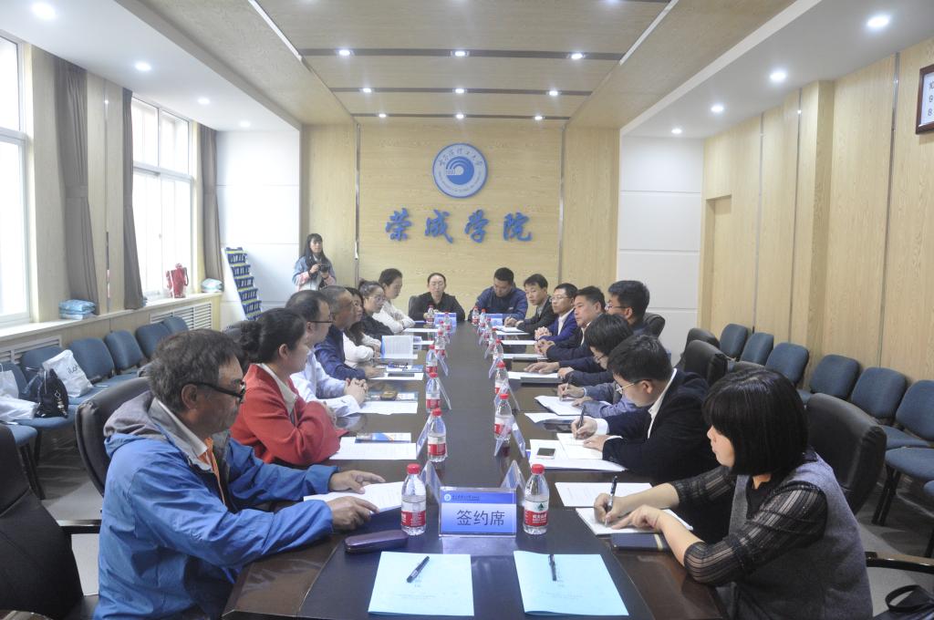 为充分发挥高校人才培养、科学研究和服务社会等功能,更好地为地方经济建设和社会发展服务,同时借助地方和企业的资源优势,为校企合作提供更大空间。10月23日下午,荣成学院与浙江万马有限公司校企合作签约仪式在荣成学院一楼会议室举行。浙江万马股份有限公司副总经理刘焕新、浙江万马股份有限公司人力资源中心总监汪文斌、浙江万马股份有限公司人力资源中心招聘经理胡艳、浙江万马专缆公司人力资源中心招聘经理陈佳、浙江万马高分子公司培训专员董丹;荣成学院党委副书记兼副院长王坤、电气工程系主任兼党总支书记高俊山、招生与就业指导中心主任张庄庄、电气工程系副主任孙晓波、电气工程系副主任胡海涛、电气工程系党总支副书记兼副主任任新光、电气工程系电气绝缘与电缆教研室教师李丽丽、盛守国、刘小可及电气系辅导员陈翠、郑亮老师出席了签约仪式。张庄庄老师主持了本次签约仪式。