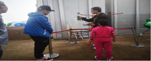 2019年10月18日早上志愿者们按照时间节点前往北门集合,到达了比赛场地后,每一组志愿者都按照场地工作人员的指示去工作,大家的工作各不相同。