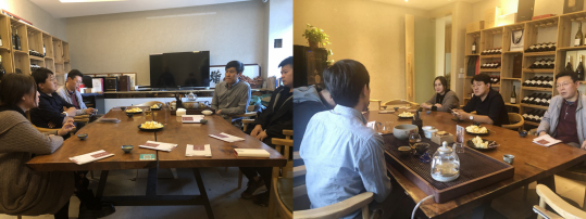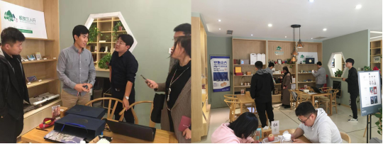 学院文创团队代表首先同校友三人行茶社项目创始人单文松开展了会谈。经单文松的介绍,师生们了解茶社的建设目的、历程和意义,学习了大学生双创项目的重要经验。随后,文创团队一行参观了山东大学(威海)双创平台的文艺创作空间和校园文创产品。师生们体验到多元化文化精神和创新理念。认识到文创空间及衍生工艺品的多种价值。