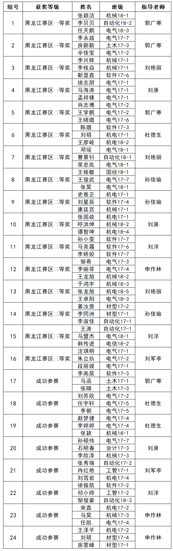 2019年全国大学生数学建模竞赛于9月12日至15日举行,荣成学院共派出24支队伍参加此次竞赛,共获得了黑龙江赛区一等奖4项、黑龙江赛区二等奖8项和黑龙江赛区三等奖4项。