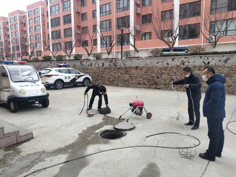 刘书记带领后勤工作人员为教工家属楼通下水道