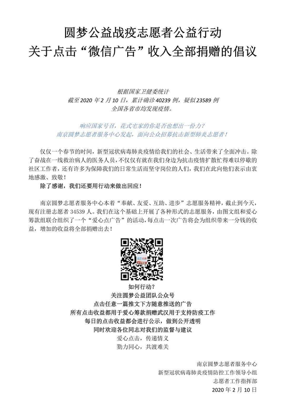 学院志愿者们表示,他们不仅将参与宣传的广告所得悉数捐赠,还在各大线上社交、信息平台发布相关公益信息进行筹集捐款。通过抖音、微博等渠道为疫情工作鼓劲,为一线的白衣天使和其他线下岗位的逆行者助力,志愿者们还展开了线上关心、关爱居家隔离的群众、家属,使其配合进行各项医学观察。利用网络平台加强舆论引导,督促群众不信谣、不传谣、不造谣,志愿者们不仅从自身做起,更落实到每个线上宣传,号召大众积极捐资助力,不断形成全民参与、共抗疫情的良好态势。