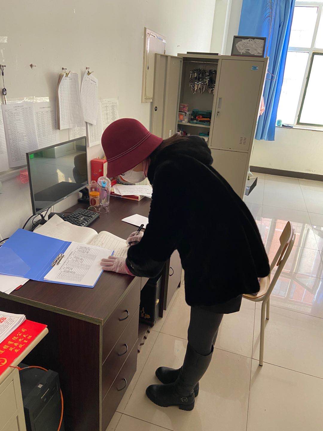 “我们的疫情防控工作一直按照学院各级领导的要求在部署,公寓楼全体工作人员很快就进入了工作状态。”李洁楼长说。每日及时汇总楼内工作人员身体健康状况、出行轨迹,利用电话进行详细沟通后,做好台账记录;组织人员每日及时完成校园健康汇报工作。这些都是李洁楼长每天必须要做的事情,但在进行每日健康汇报工作的时候,由于职工老龄人员的比例及智能手机、软件操作能力等方面的困难,李洁楼长采用电话教授、微信语音、同村同事帮忙、返校现场指导等方式,对所有人员进行平台使用培训,针对部分难以使用平台的人群,在保证每日真实;及时上报个人情况的前提下,采取了“子女代操作”的方式,做到能保证每日及时准确的汇报工作。李洁楼长说,每个部门都在做防疫工作,她相信在大家的共同努力下,一定能打赢这场疫情防控阻击战。