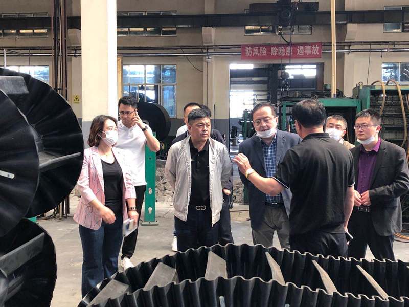 随后,一行人来到会议室,宋经理介绍了公司的主要经营范围,该公司是国内主要从事输送带产品设计和制造的专业生产厂家,输送带系列产品在国际、国内都具有很高的信誉及一定的知名度。公司主要产品包括普通输送带、钢丝绳芯输送带、阻燃输送带、防撕裂提升带、耐热耐灼烧输送带、耐油、耐酸碱输送带、人字花纹输送带等,产品广泛应用于矿山、码头、水泥、冶金、化工电力等行业。