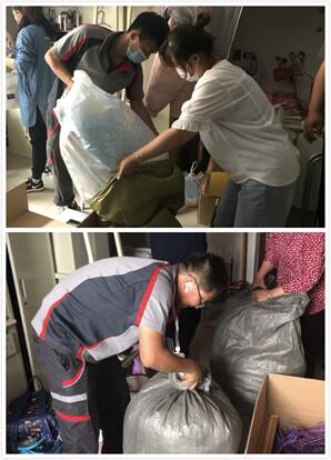 辅导员和社区工作人员为学生整理个人物品