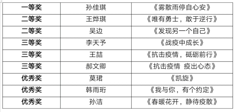 本次大学生心理健康教育宣传月活动,在新冠疫情这样一个特殊时期,以线上的方式对学生进行心理疏导和排解,将心理健康知识融入各类线上活动,使学生在参加活动的过程中,了解自身当前的心理健康状况,找到消除心理忧虑的具体途径,树立疫情期间正确的心理观念,提升大学生心理健康素质。相信经此一“疫”,同学们会拥有更强大的内在力量,变得更懂感恩、更加坚强。