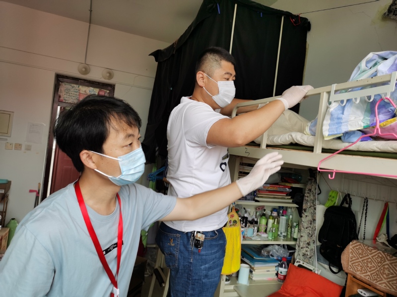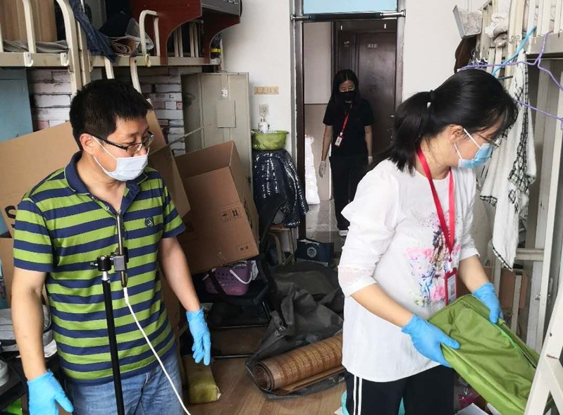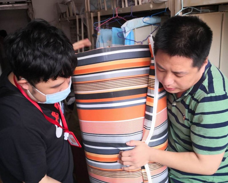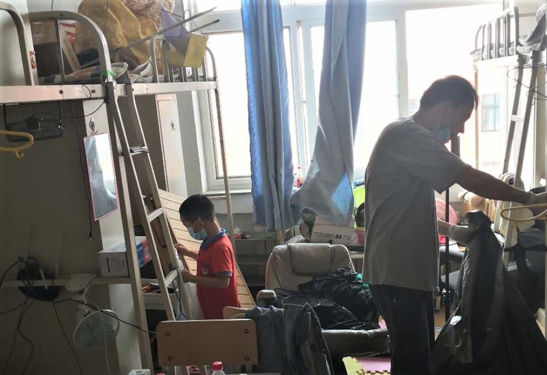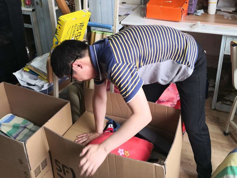 在行李邮寄过程当中,老师们不怕苦、不怕累,爬到床上、钻到打包袋里,汗流浃背,满脸灰尘。打包过程当中,老师们耐心与学生交流,仔细确认学生物品,打包完成后,认真填写行李确认单,以生为本,用优质的服务获得了学生的理解与满意。