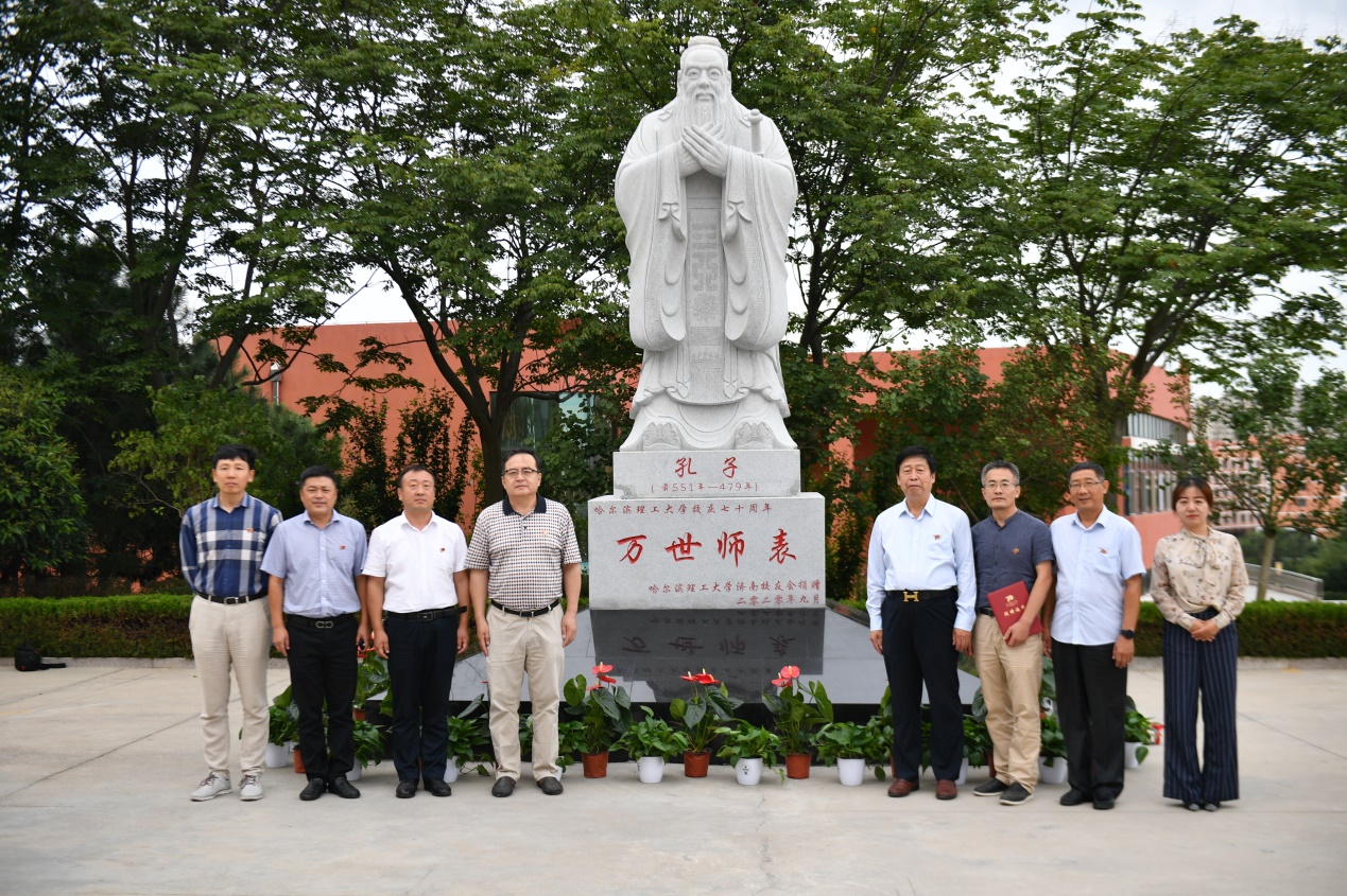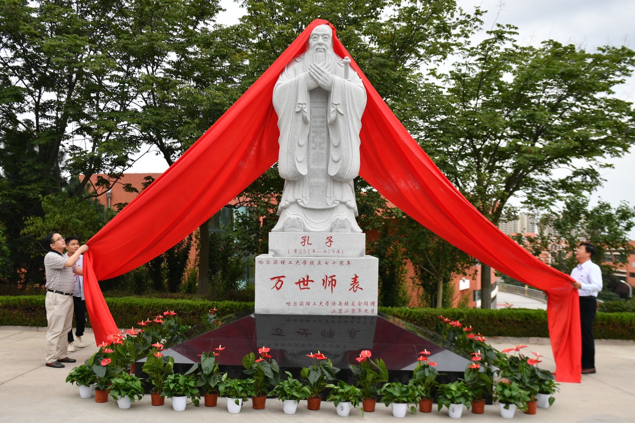 梁川会长代表济南校友会向母校70周年华诞表达了最真诚的祝福。他提到,为了70周年校庆,济南校友会的广大校友提前几年就已开始策划捐赠事宜,“万事师表”孔子雕像的选择蕴含了多层次含义,一是表达了济南校友会广大校友对母校培养教育的感恩之情;二是荣成学院坐落在山东地区,把孔子雕像安置于荣成学院,象征着理工精神与中国传统文化的融合,象征着母校教书与育人并重的教育理念;三是希望哈理工的学子们,能见贤思齐,为己修身、为国修业,做有风度、有科学文化知识、有高尚风德的大学生。
