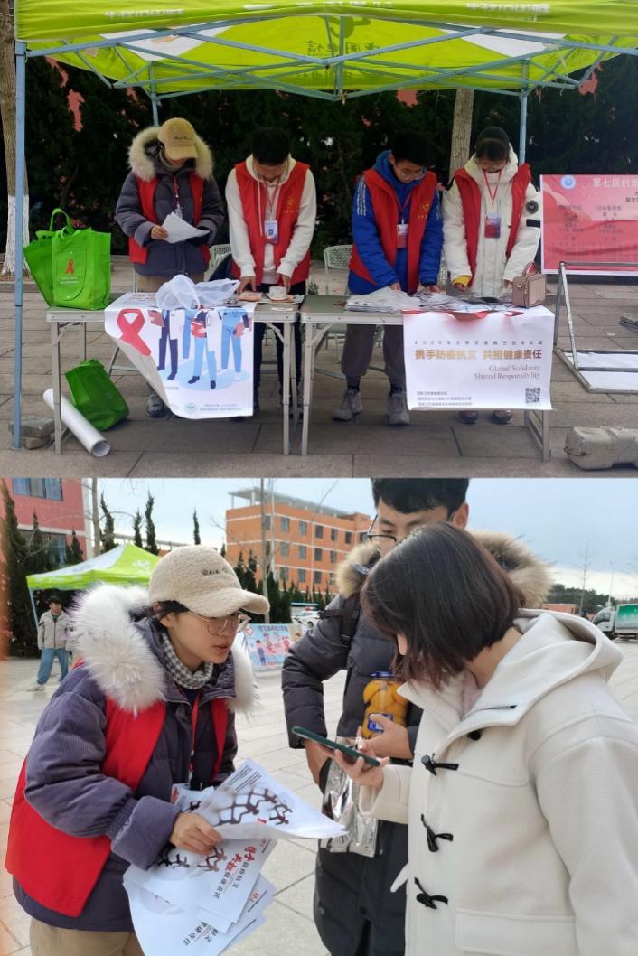 11月28日和29日,院青年志愿者协会成员在二食堂楼下为同学们发放了防艾宣传页,在全院学生中普及防艾小常识。