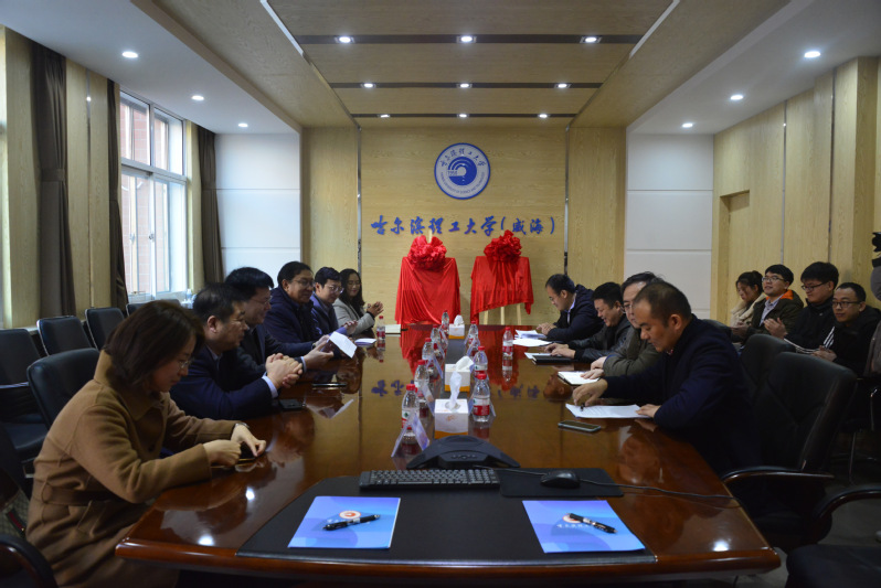 座谈结束后,学校、政府、企业三方领导共同为产学研合作基地和隆泰能源装备研发中心揭牌。