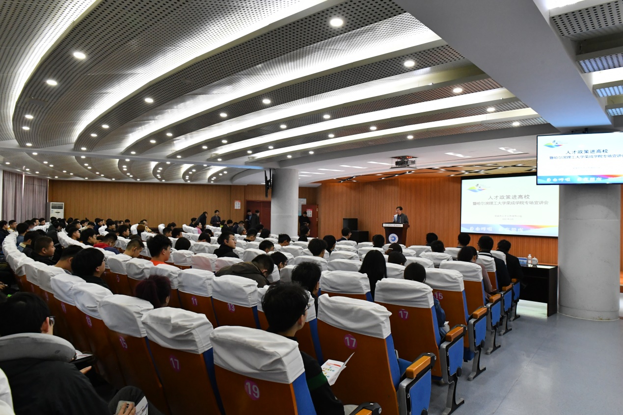 3月23日上午09:00,由荣成市委组织部、人力资源和社会保障局主办的人才政策进高校首场活动暨哈尔滨理工大学荣成学院宣讲会在图书馆七楼报告厅顺利召开。荣成市委常委、组织部部长王得志、市委组织部副部长、人力资源和社会保障局局长王立新,哈尔滨理工大学党委常委、工会主席兼荣成学院院长徐向晨、荣成学院常务副院长杜野、校纪委办公室副主任兼荣成学院纪检监察室主任赵运平,荣成市委组织部、人社局、工信局分管负责人、荣成学院各系主任、分管学生工作书记、全体辅导员及部分2021届毕业生参加会议。会议由市委组织部副部长、人力资源和社会保障局局长王立新主持。
