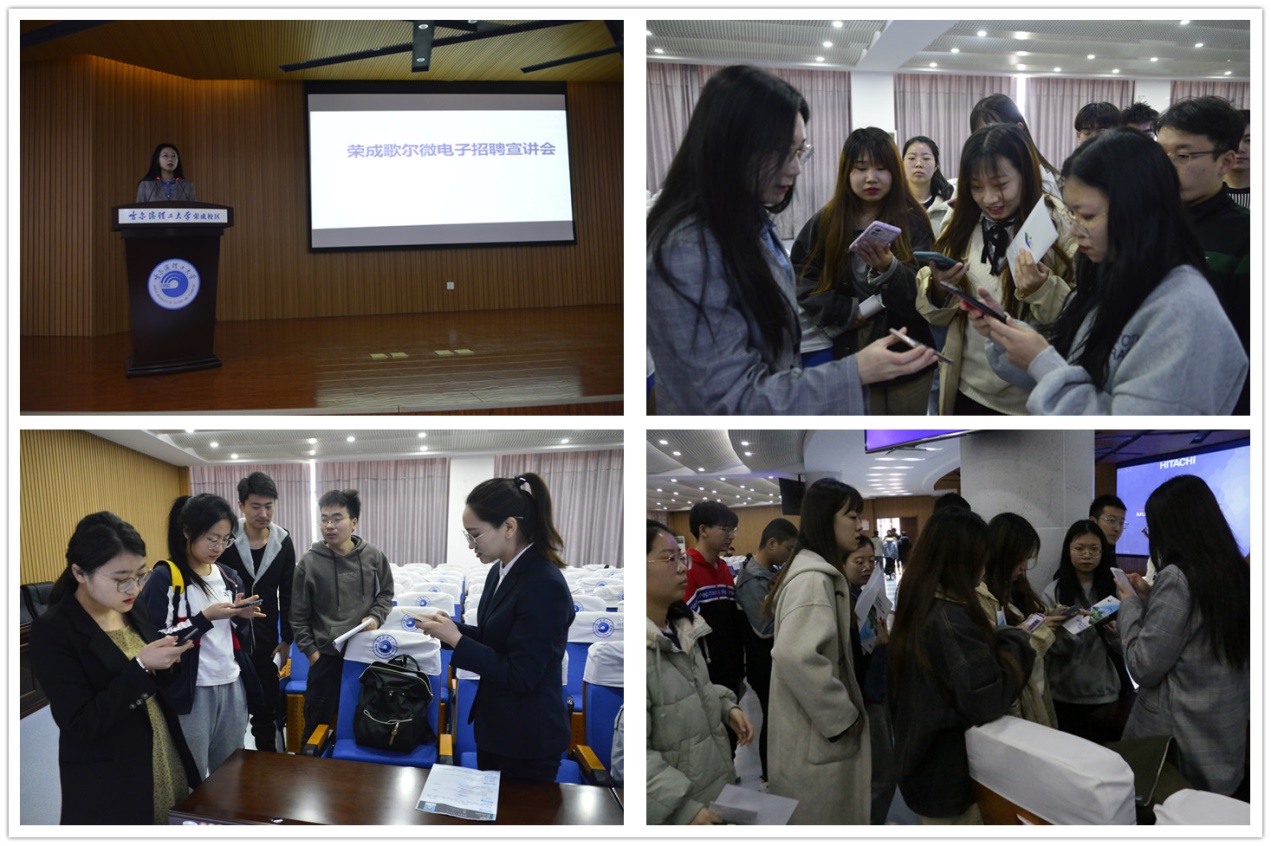 此次活动分为启动仪式和企业招聘宣讲两个环节。在启动仪式上,荣成市工信局、人力资源和社会保障局分别介绍了荣成市主导产业和重点企业情况、毕业生聚荣就业创业支持政策;浦林成山(山东)轮胎有限公司、康派斯新能源车辆股份有限公司和荣成歌尔微电子有限公司进行了招聘宣讲。
