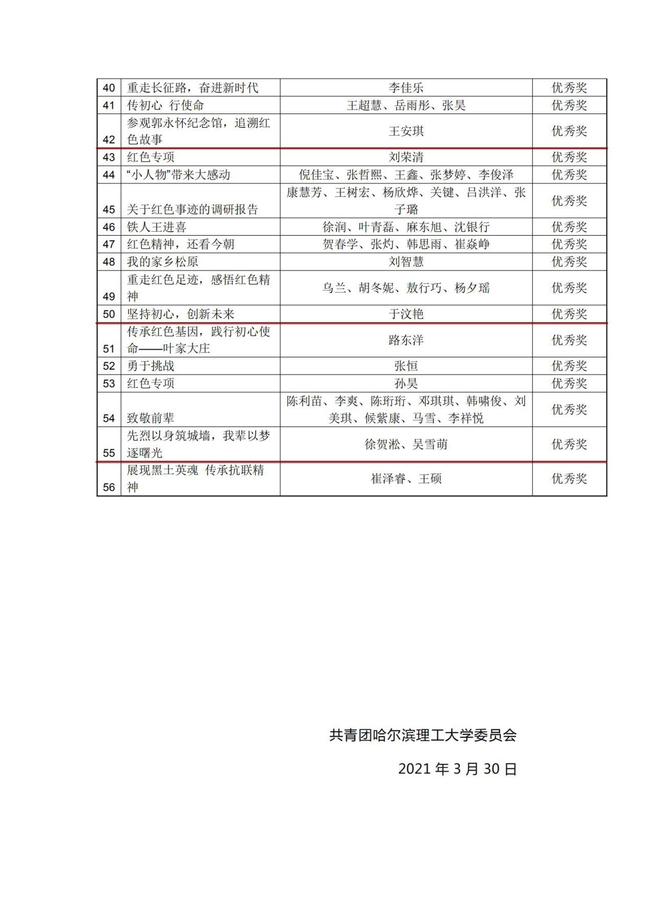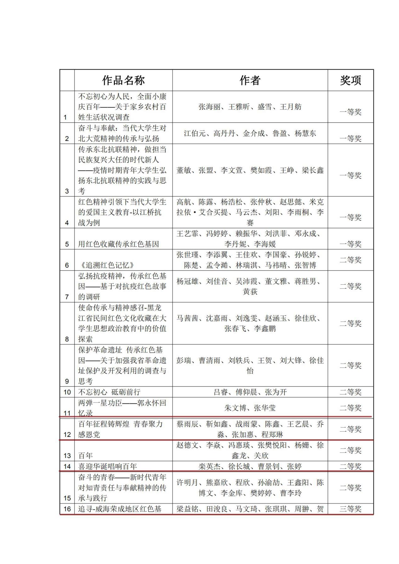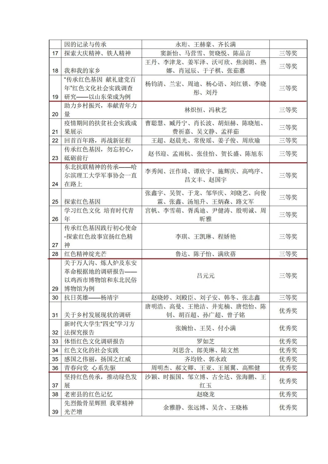 第十七届“挑战杯”全国大学生课外学术科技作品竞赛红色专项活动哈尔滨理工大学选拔赛获奖名单