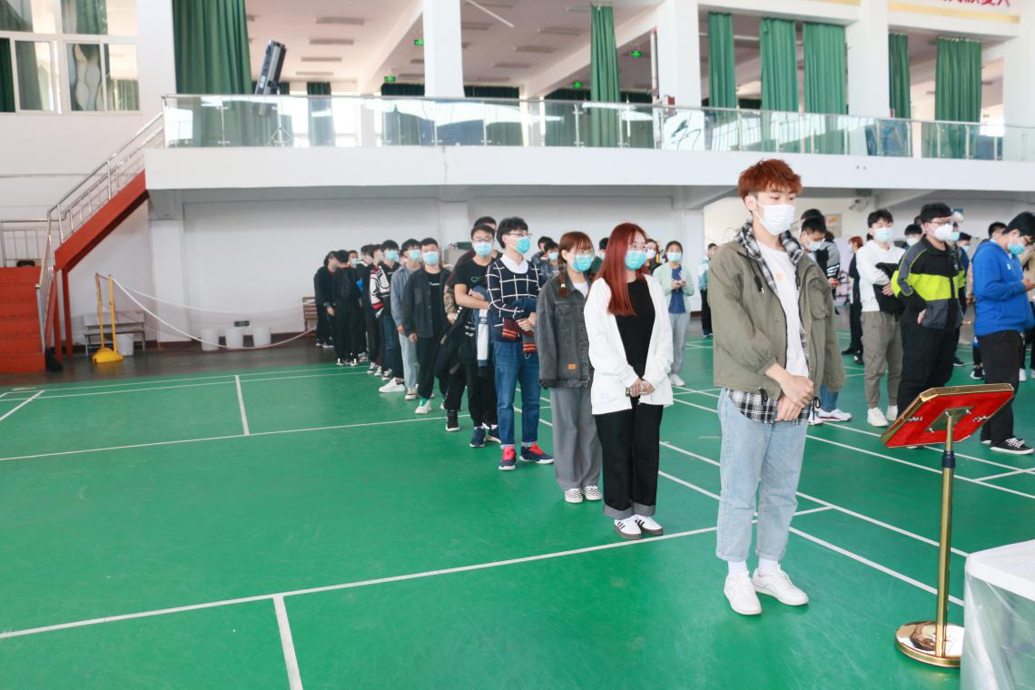 接种工作井然有序、高效快捷。学院将文体中心作为接种点,扎实做好区域划分、场地布置、人员组织、物资配备、环境消杀、现场保障等工作。在荣成市疾控中心的组织下,荣成市卫健局党组成员、疾控中心主任马海带领医护人员参与本次疫苗接种工作,学院工作人员及学生志愿者参与现场组织引导。接种现场划分为等候区、健康咨询区、身份登记区、接种区、留观区、应急处置区、医疗垃圾存放区等区域。各区域都摆放了统一标识的指示牌,以便学生快速定位、有序接种。