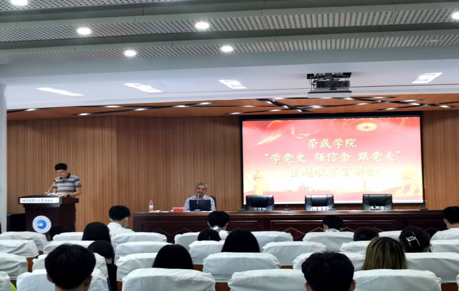 为引导青年学生进一步坚定理想信念,全面提升大学生骨干的综合素质,以庆祝建党100周年为契机,同时加深学员对党史的了解与认识,学深悟透习近平新时代中国特色社会主义思想,掌握马克思主义的思想方法和工作方法,进一步坚定跟党走中国特色社会主义道路的信心和决心为出发点,我院于2021年6月5日在图书馆7楼报告厅举办了2021年度“青年马克思主义者培养工程”培训学习。寻山街道“红马扎”党史宣讲队员张守强,寻山街道挂职党工委委员王钰琳,学院马列主义教研部主任兼党支部副书记董晗,学生工作办公室副主任兼团委书记孙晶,各系培训班学员、学生代表等近200人参加了本次培训。