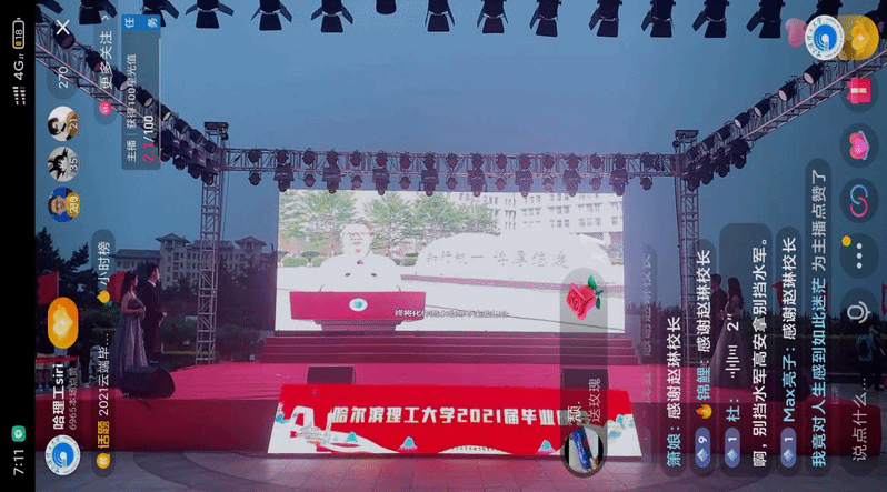 本次晚会通过抖音全程直播,毕业生和家长纷纷点赞留言,祝福老师工作顺利,祝福学校再创辉煌,祝福祖国繁荣昌盛,祝福党的100周岁生日快乐。晚会后,毕业生们表示:大学四年,他们不负青春、拒绝躺平、淬炼成长,收获了“哈理工的底色”;未来人生,他们将继续秉承“知行统一,博厚悠远”的校训,目光坚定,脚步从容,和着新时代的节拍,在自己未来的岗位上作出自己的贡献。晨钟催醒巍巍江城,东方朝日在此升腾,长江汉水春潮滚滚,扬起新的哈理工精神!(摄影:唐 哲 贺长盛)