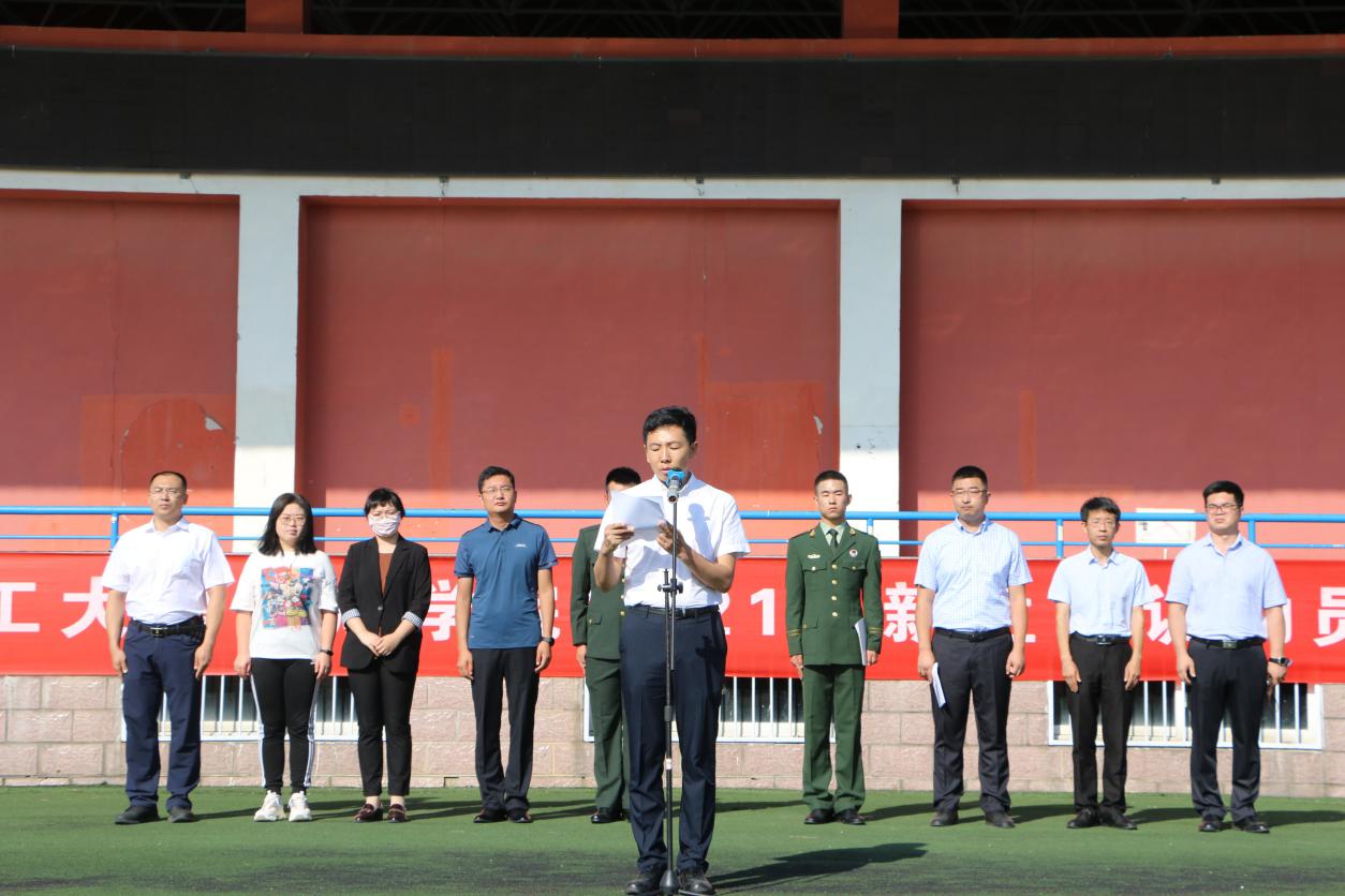 赵运平副书记首先对2021级新同学表示欢迎。由于校园严格管控,不得不推迟了萌新们进校、回寝的时间。当迎新返校叠加校园管控,全院上下快速反应、积极应对,经过全员检测、隔离观察、健康监测等措施,学院取得了将疫情“拒之门外”的阶段性胜利。疫情形势下的开学也给同学们上了一课,同学们学会了波澜不惊从容以对,学会了管好自己不添麻烦,学会了听从指挥服从大局,学会了守望相助共同承担。赵运平副书记代表学院对军事训练工作提出了科学组训、灵活施训、文明施训等具体要求,并指出:军事训练是强化国防观念和国家安全意识的重要内容,能够帮助大学生快速适应大学新生活,学会自律、自立、自强,提升“逆商”“群商”,是练就坚毅品格、培养合群意识的有益方式,是体能和意志的双重锻炼,必将是大学生活的难忘经历。