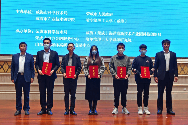 随后,王厚全局长、汤占胜院长、张立双书记、刘峰副市长共同为“哈尔滨理工大学威海研究院”揭牌,并分别为此次大赛获奖者颁发证书。