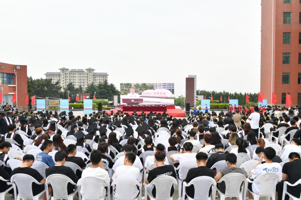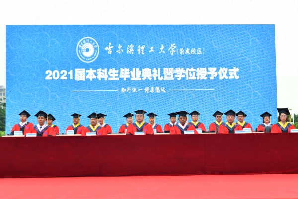 青山看我如是,碧海蓝天为证,校训石前约定,6月25日下午,学院在行政楼门前召开2021届学生毕业典礼暨学位授予仪式,学院领导、校友代表、导师代表及2021届全体毕业生参加,毕业典礼由荣成学院党委副书记赵运平主持。