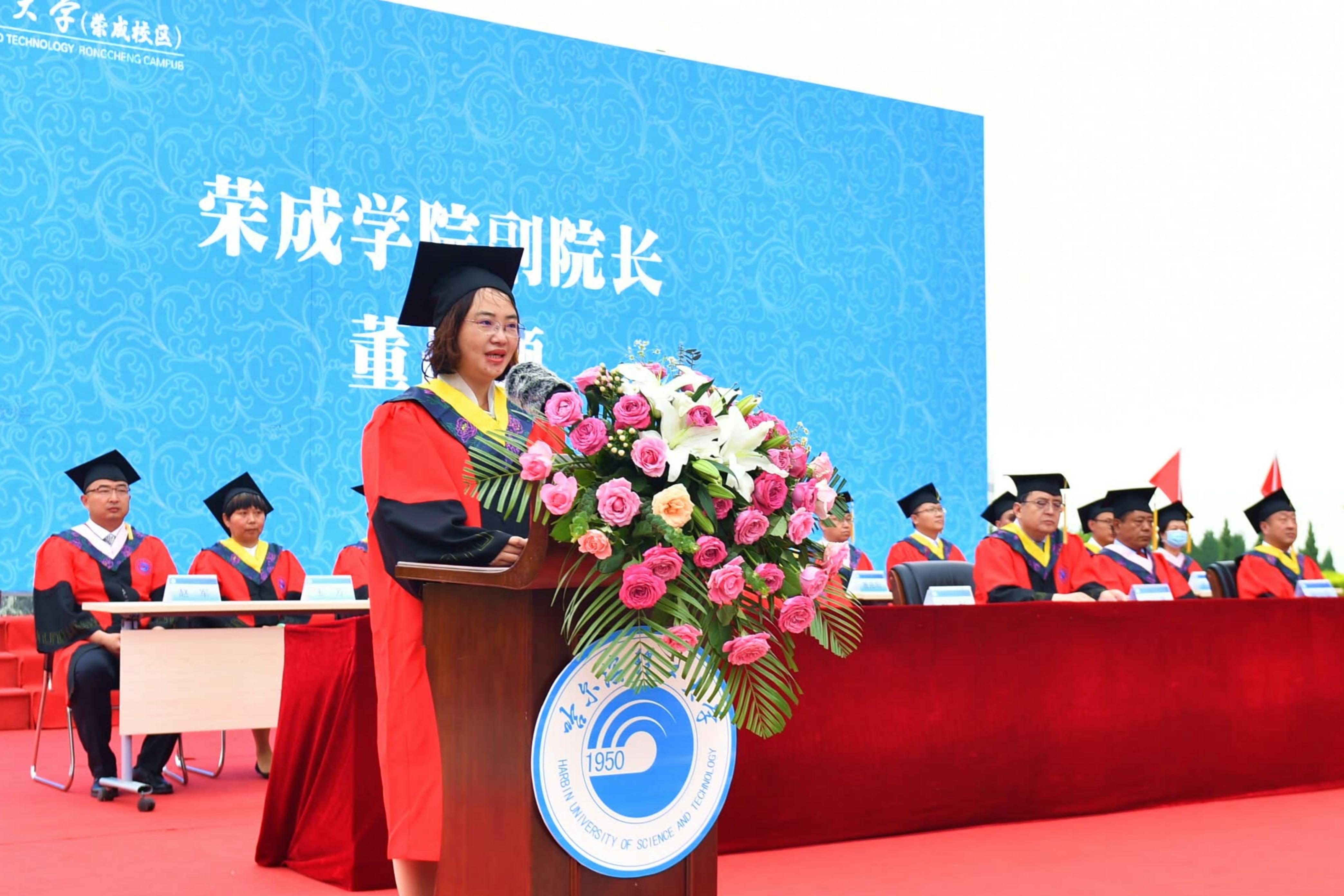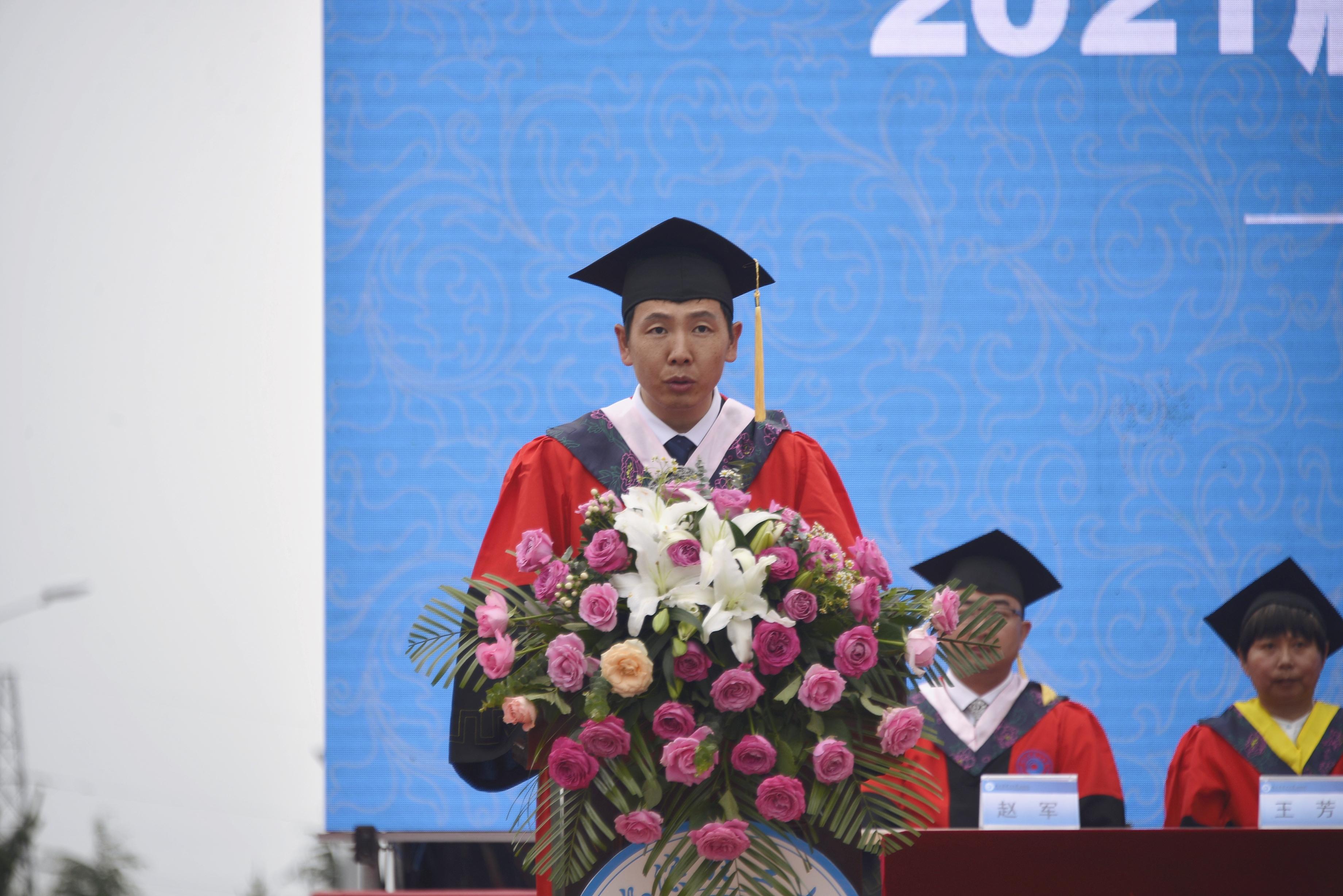 学校党委常委、工会主席兼荣成学院院长徐向晨讲话,徐向晨院长代表学院向圆满完成学业的2021届2032名毕业生表示热烈的祝贺!向辛勤耕耘、无私奉献的教职员工表示崇高的敬意!向关心支持学院发展的家长、历届校友和社会各界朋友们表示衷心的感谢!