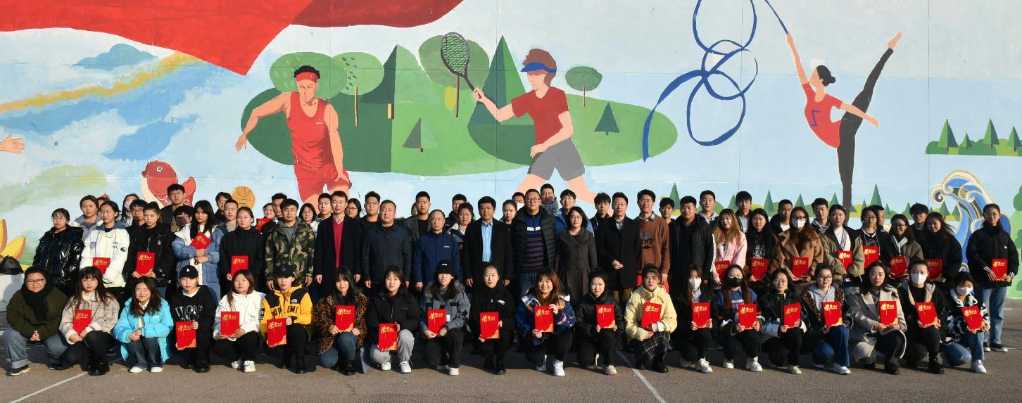 11月26日,荣成学院党委书记张立双、院长段宏伟、副院长刘云峰、副院长沈俊峰、副院长董晶颢来到体育场西侧外墙前,对艺术系墙体彩绘进行验收并为参加活动的师生颁奖,标志着艺术系墙体彩绘活动圆满完成。