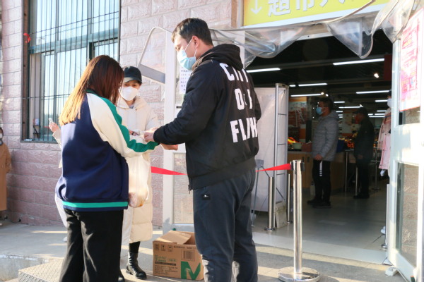 根据防疫工作要求,全市范围内辖区社区实行封闭管理。为更好服务院内师生,维持良好学习和生活秩序,学院教职工发挥着教育工作者的职责与使命,积极承担起学校疫情防控志愿服务工作,用实际行动来诠释师者担当。(摄影:宋晓旭)