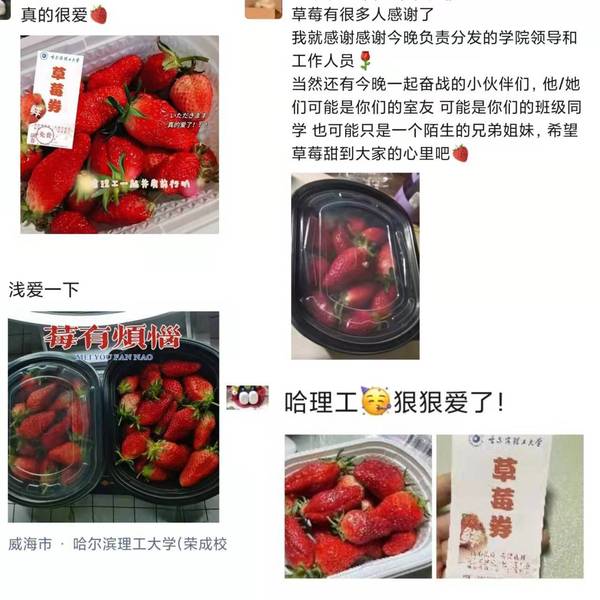 “我们确保每一位同学都有,如果没有,那一定在路上。”草莓券上的标语,深深印在学生心中。草莓很甜,但学院对学生的关爱更甜。