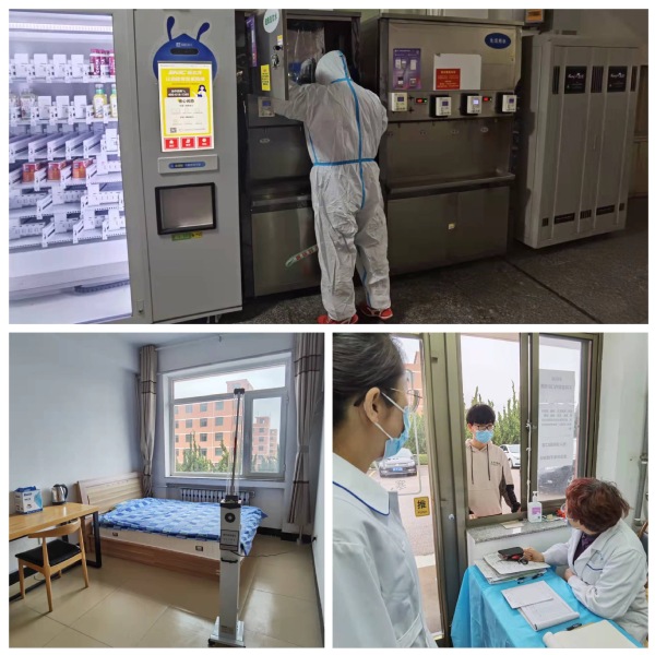 面对人员少、任务重以及适时变化的疫情防控政策,做到人员互补、团结协作、创新管理、精准施策、抓实抓细疫情防控工作:准确核对了6栋教师公寓的现住人员信息;通过网上预约及线下发票相结合的方式,确保了全院6207名在校生及230名临住院内教职工的安全洗浴;通过延长清运时间及频次,保证了院内倍增生活垃圾的日产日清;夯实人员培训,保质完成了每日全院无死角的消杀通风工作并认真做好记录;直饮水工作人员全天候的检查及维修,保障了师生的健康饮水;院内卫生所医务人员24小时坚守,方便了师生及时就医;隔离区管理井然有序,为应急处置提供了安全场所。