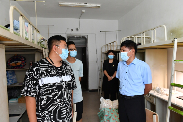 张立双书记到部分新生宿舍走访慰问2022级新生,细致地询问新生报到情况和生活、防疫用品配备情况,并与新生进行了亲切的交流,他勉励同学们进入大学后要学会多角度思考问题,克服依赖性,锻炼自立能力,增加适应能力,不要沉迷游戏,多参加社团组织,锻炼自身素质,锻炼思维能力,以饱满的热情投入到大学校园的学习生活中去。