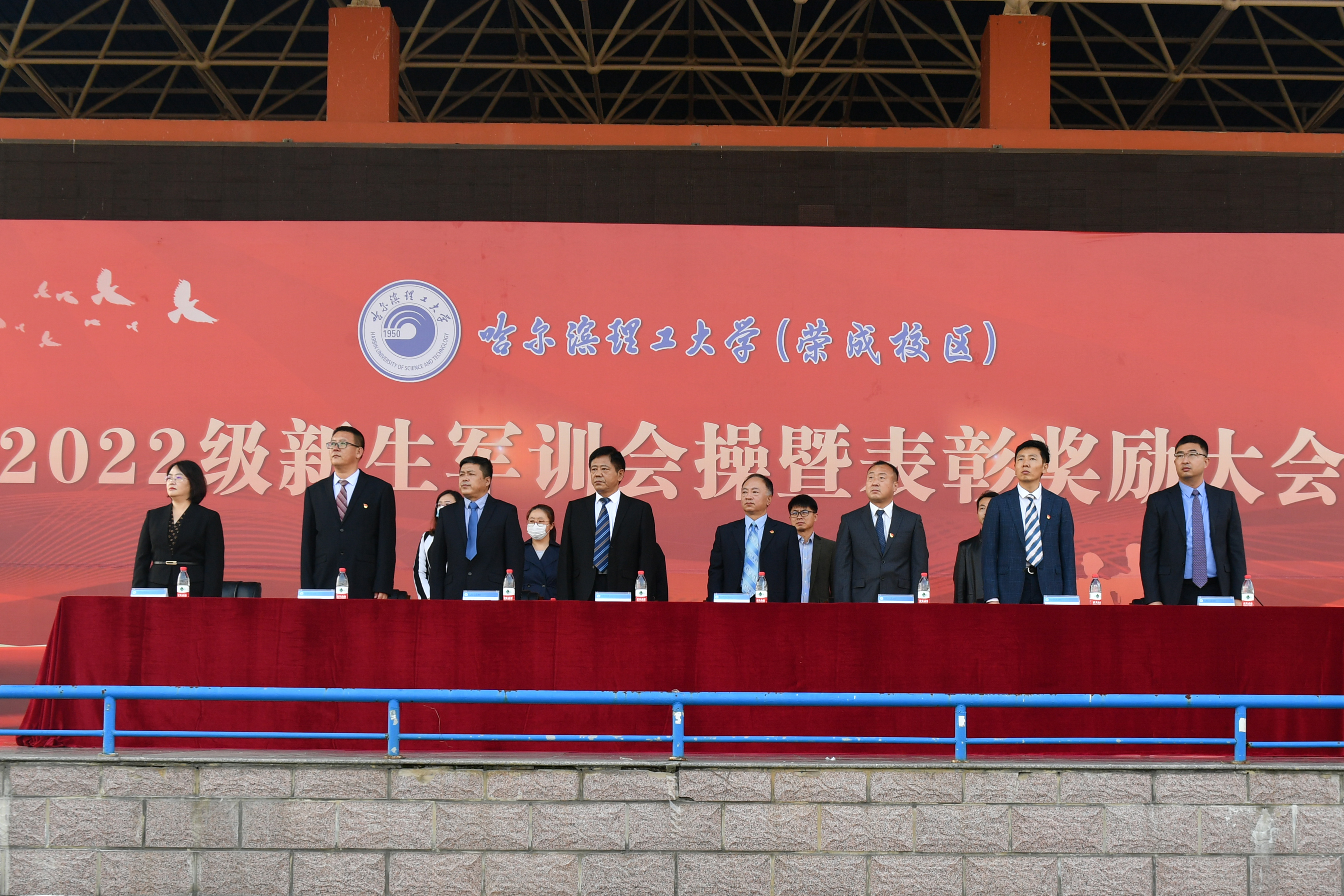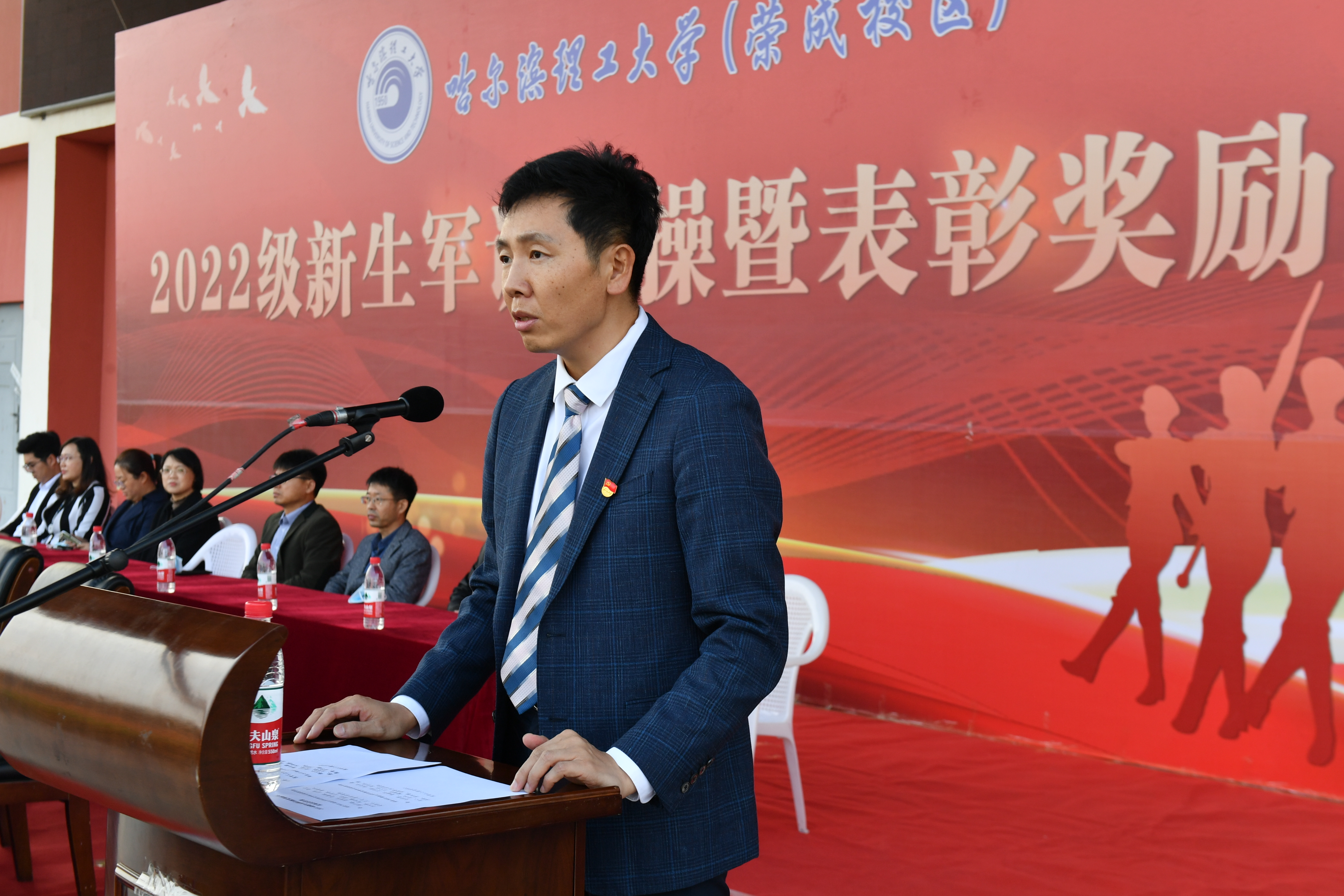 10月14日下午3:30,荣成学院2022级新生会操暨表彰大会在学院田径运动场隆重举行,为新生的军事训练画上了圆满的句号。荣成学院党委书记张立双,院长段宏伟,常务副院长杜野,副院长刘云峰,副院长沈俊峰,党委副书记赵运平,副院长董晶颢以及党委工作办公室、教务办公室、学生工作办公室负责人,各系主管学生工作书记、副书记,全体承训教官,2022级辅导员和1700余名参训新生参加大会。大会由学生工作办公室兼保卫办公室主任赵军主持。