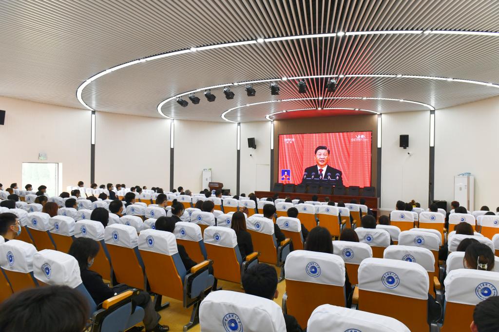 10月16日上午10时,中国共产党第二十次全国代表大会在北京人民大会堂隆重开幕,在党和国家发展历程中又一至关重要、激动人心的时刻,荣成学院理论学习中心组成员、学院基层党务工作负责人、党支部书记、教师代表、学生代表等在办公楼一楼大学生活动中心集中同步收看大会盛况,各党支部同步组织师生以多种形式观看大会实况,聚精会神聆听习近平总书记所作报告。