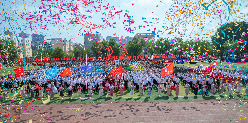 党委书记赵琳宣布我校2023年田径运动会开幕。一时间,运动场内礼炮齐鸣、彩带满天,五颜六色的气球腾空而起,现场顿时变成了欢乐的海洋。
