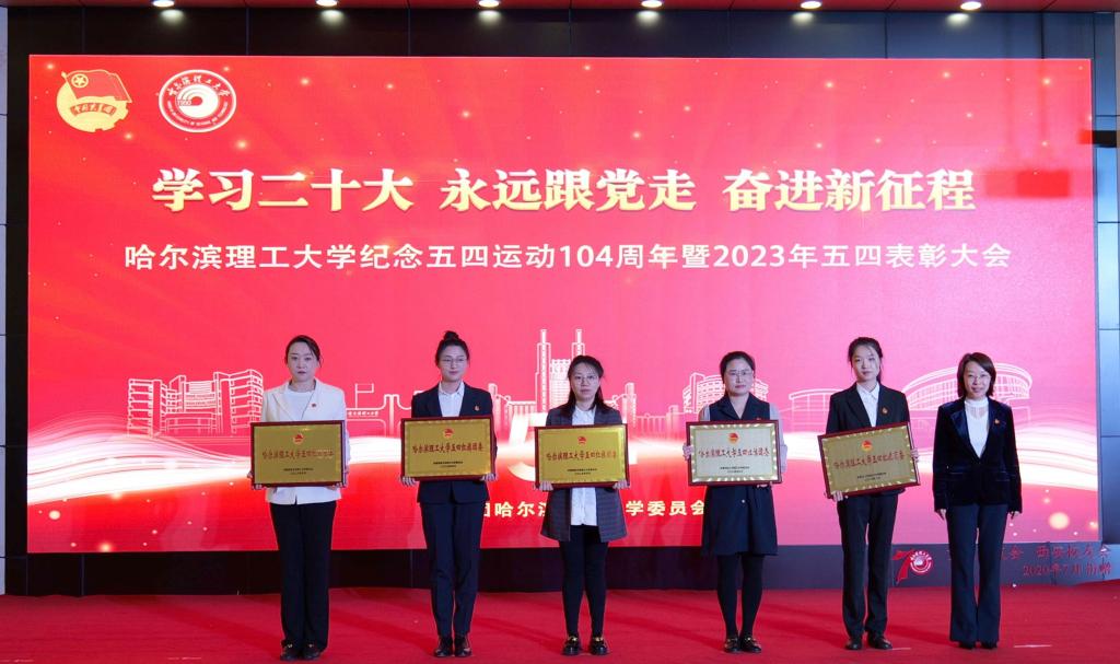 党委学工部部长戴湘竹、团委书记韩彧博为2022年度哈尔滨理工大学五四红旗团支部代表颁奖