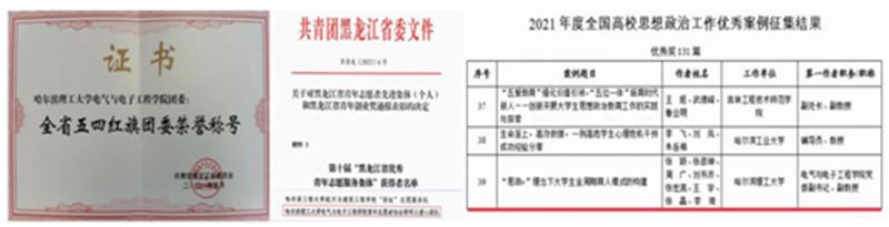 近三年,学院荣获省“教育系统先进集体”、省“先进基层党组织”等荣誉称号。学院教师获评省“双带头人党支部书记工作室”、省“劳模和工匠人才创新工作室”,一批教师被评为省级劳动模范、优秀共产党员、向上向善好青年,获五一劳动奖章、青年五四奖章、归国青年报国奖,学院教师在省高校党支部书记素质能力大赛中获得二等奖。