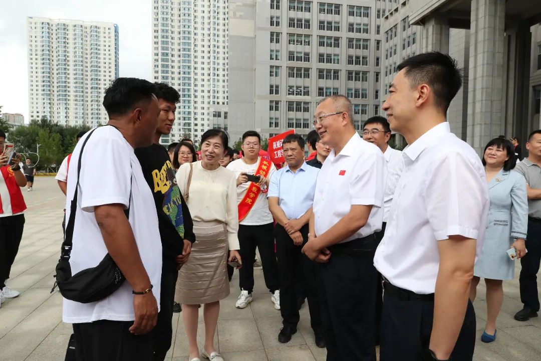 学校领导高度重视迎新工作,上午10时,校党委书记赵琳,校长刘侠,校党委副书记赵水杉,副校长杜军在相关工作人员的陪同下深入西区和南区迎新现场走访慰问。学校领导一行深入迎新接待点、志愿服务站、学生公寓、教学楼等地,慰问迎新工作人员及志愿者,与2023级新生及家长亲切交流,了解同学们的生源地、所学专业、入学感受及未来规划,并勉励同学们要尽快适应新环境,变换新角色,争做新时代的奋进者、开拓者和奉献者。学校领导详细了解了数字迎新的情况,为家庭经济困难学生发放了爱心大礼包。在迎新现场,学校领导每到一处都驻足询问、细致聆听,详细了解各项迎新工作的基本情况及各学院迎新工作的进展、新生报到流程和住宿安排、绿色通道的办理情况等,对坚守在迎新一线的各学院领导、教师、辅导员和迎新志愿者表示慰问,对他们的辛勤工作给予充分肯定。
